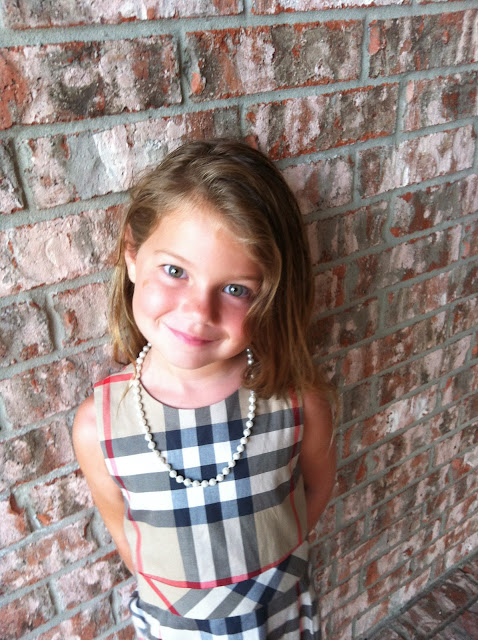 she loves it of course!! she didn't even want me to get out of the car with her on the first day of school!!! she is so easy going...no worries EVER. kinda like her mama. and she looked so cute...burberry...cause she's fancy like that :)